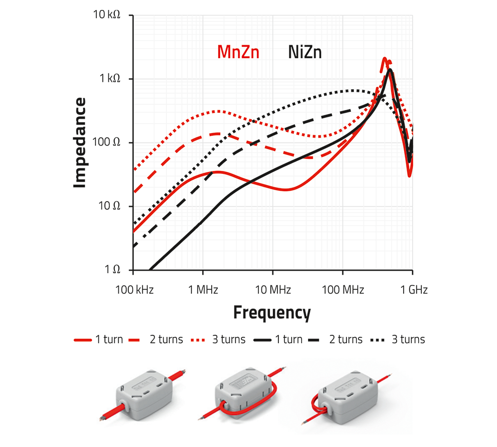 Ferrite cores and snap-on ferrites are designed to suppress EMI directly on the affected cable. They work by absorbing unwanted RF noise without affecting the useful signal. This makes them an easy and effective retrofit solution for improving EMC performance without altering the PCB.