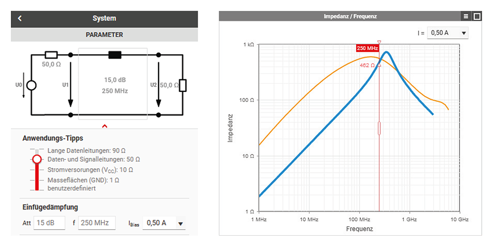 The capacitance of a capacitor is typically also dependent on an applied direct current voltage (DC Bias) and can become significantly lower with increasing voltage. From the DC Bias/capacitance diagram, it is clearly visible that with increasing miniaturization of the component, the nominal value of 470 nF decreases (red curve).