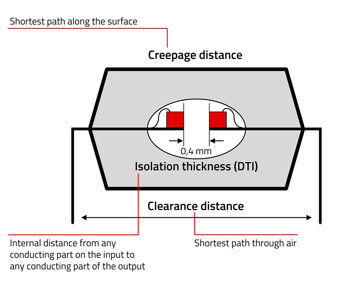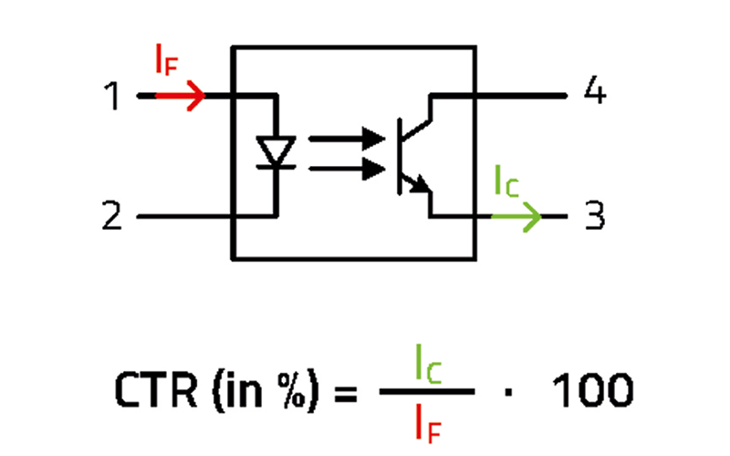 Optocouplers are frequently used in the control path of power supply circuits that require galvanic isolation between the primary and secondary sides. The most important parameters include the Current Transfer Ratio (CTR) and the isolation voltage. Darlington optocouplers (left) offer a high CTR, while phototransistor optocouplers enable short switching times.