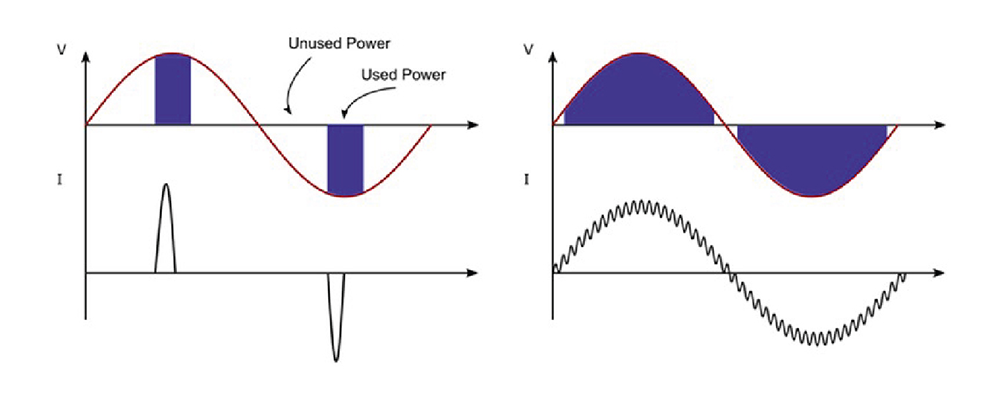 Especially in applications with higher power, a power factor correction (PFC) is needed to reduce reactive power and thus increase efficiency. The standard EN61000-3-2 defines the value of the maximum permissible harmonic currents. This is where power factor correction chokes (PFC Chokes) come into play, ensuring high efficiency with good EMC performance.