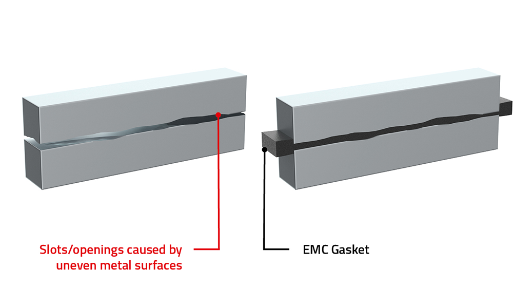 Even in fully metallic housings there needs to be a door or hatch for placing the electronics inside. To close the small gaps and to prevent interfering signals, from leaking, we offer EMC gaskets for various assembly conditions.