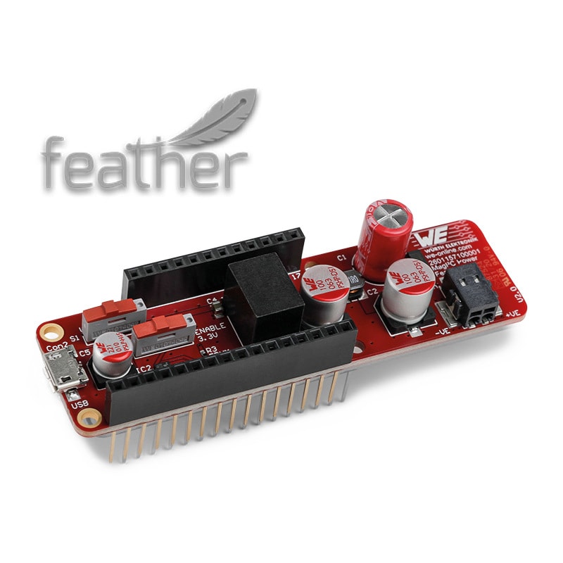 • Plug compatible 5 V and 3.3 V power supply for whole WE FeatherWing ecosystem