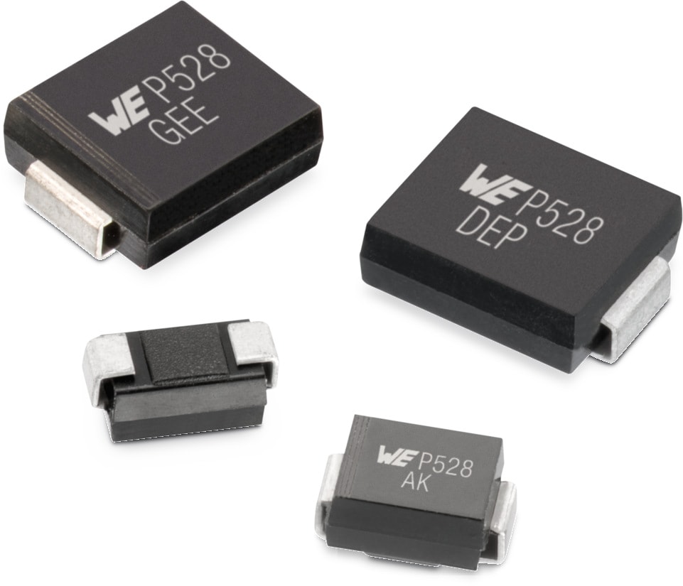 824550151 | SMDJ15A, 15 V, 17.6 V | | Status Activei| Production is active. Expected lifetime: >10 years. | Technical ReferenceSMDJ15A | DC Operating Voltage15 V | (Reverse) Breakdown Voltage17.6 V | (Reverse) Peak Pulse Current123 A | Power Dissipation3000 W | Clamping Voltage [max.]24.4 V | Design Kit – | |