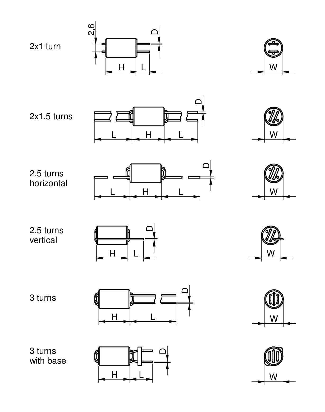 - Impedance will increase with more turns, available in 1 to 3 turns