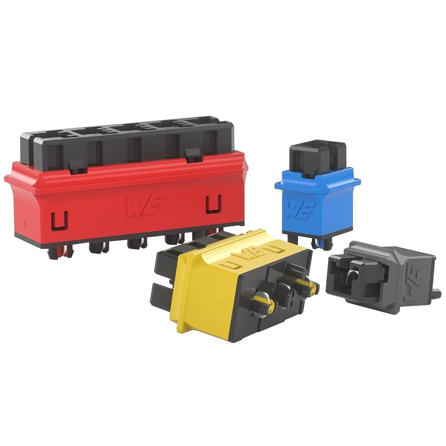 New solderless direct connector WR-WSP for power applications. It has integrated reverse polarity protection for the right mating and active locking with acoustic and haptic feedback.