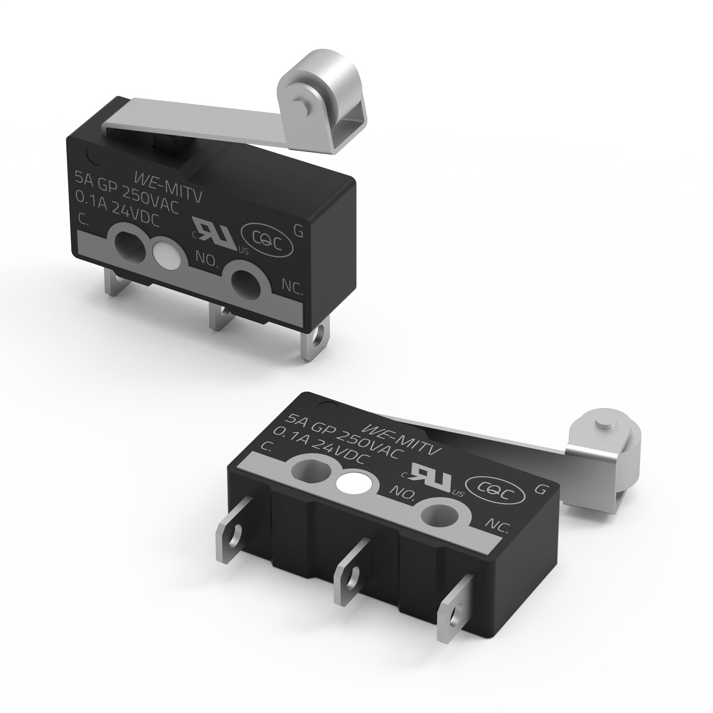 WS-MITV THT Solder lug with Roller Lever Micro Switch, 19.8 x 6.4 mm
