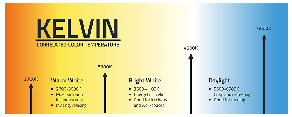 White LEDs for general lighting are available with various correlated color temperatures (CCT), mimicking natural sunlight at different times of the day.